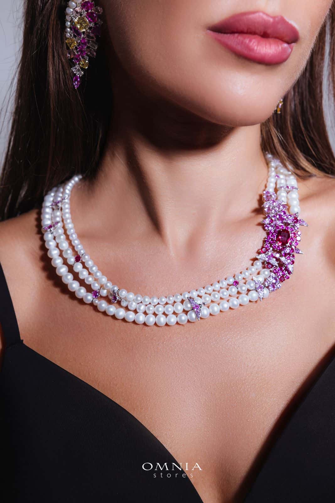 Omnia Nahla Fresh Real Water Pearl Necklace 925 Silver High Quality Simulated Diamonds