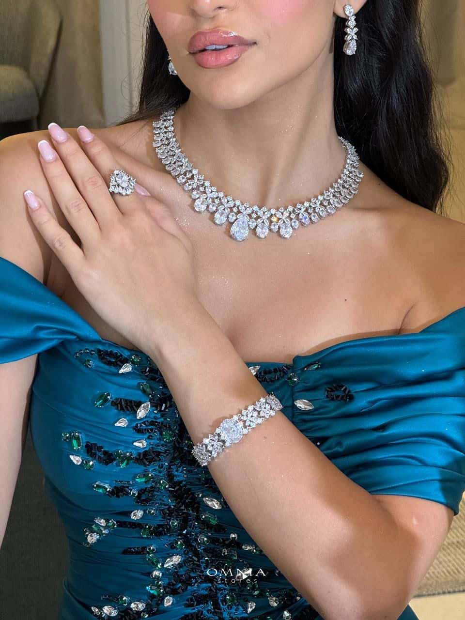 Omnia Nudhar White Bridal Full Set in 925 Silver High Quality Simulated Diamonds