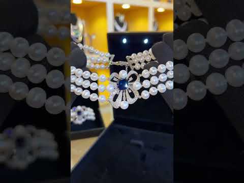 Mahboobeh Blue Pearl Necklace in 925 Silver with High Quality Simulated Diamonds