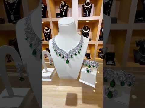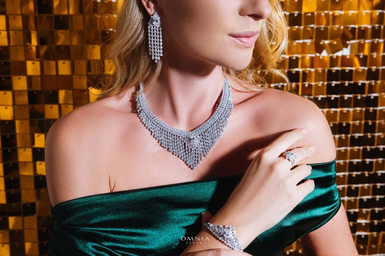 Omnia Nareen Green Bridal Full Set in High Quality Zircon Stone Rhodium Plated