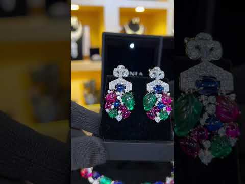 قلادة أمنية داريا من الفضة عيار 92.5 مرصعة بألماس صناعي متعدد الألوان وتصميم أوراق الشجر