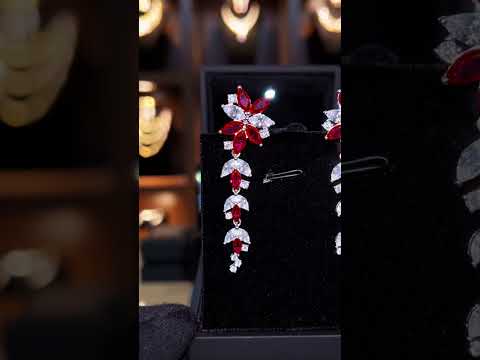 تُعد أقراط عبلة الحمراء مزيجًا شعريًا من الألوان والضوء. تتميز بتصميم معقد من الماس المحاكي عالي الجودة بقطع ماركيز وكمثري، ويركز التصميم على الأحجار المركزية الحمراء النابضة بالحياة التي تحاكي عمق الياقوت الطبيعي. صُنعت أقراط عبلة من الفضة الإسترليني عيار 925 ومطلية بالروديوم بمعايير البلاتين، وهي مصممة للمرأة التي تريد أن تعكس مجوهراتها قوتها وأناقتها.
