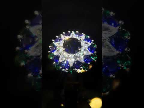 - Style: Elegant silver ring with royal blue and emerald green stones