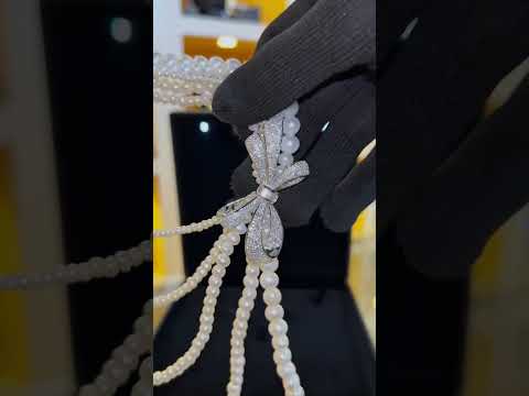 - مجموعة من قلادة طويلة من الفضة عالية الجودة عيار 92.5 مرصعة بلؤلؤ المياه العذبة