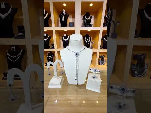 مجوهرات زفاف مطلية بالروديوم | أحجار زركون زرقاء عالية الجودة