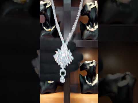 مجموعة السلسلة الطويلة اللامعة والأنيقة مصنوعة من أحجار الزركون الأبيض عالية الجودة ومطلية بالروديوم.
