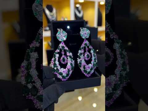 أحجار الألماس الاصطناعية متعددة الألوان بألوان الباستيل الناعمة ودرجات ألوان الأحجار الكريمة الغنية، مُرتبة بدقة لتعكس الضوء مع كل حركة، مما يجعل هذه الأقراط قطعةً فنيةً آسرة. تصميمها الكلاسيكي المتدلي يُناسب جميع أشكال الوجوه ويضفي عليها لمسةً من الأناقة، بينما توفر قاعدتها المصنوعة من الفضة الإسترلينية المتانة والفخامة والراحة المضادة للحساسية.