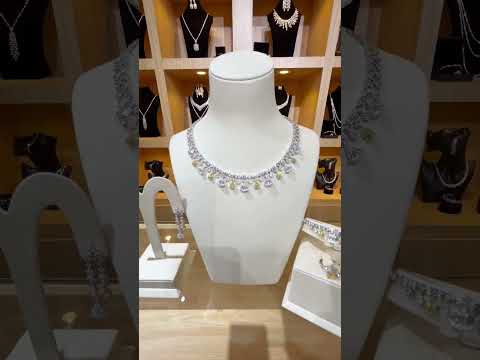طقم زفاف أمنيه مروة الأصفر الكامل بأحجار الزركون عالية الجودة مطلي بالروديوم