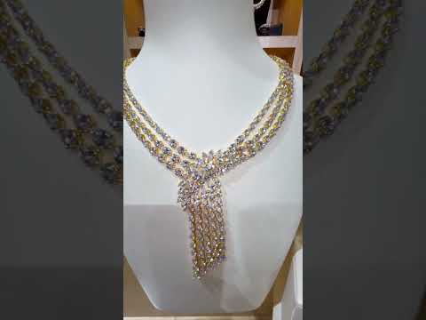 طقم اكسسوارات زفاف أمنية رهف الذهبي الكامل بأحجار الزركون عالية الجودة مطلية بالروديوم