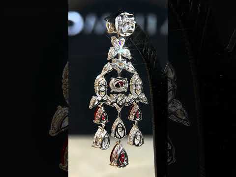 - التصميم: أقراط متدلية أنيقة بأحجار بيضاء وحمراء