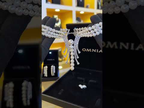 Omnia Shanina Bridal Full Set Designed with Freshwater Real Pearls and High-Quality Simulated Diamonds in a Rhodium Plated Finish