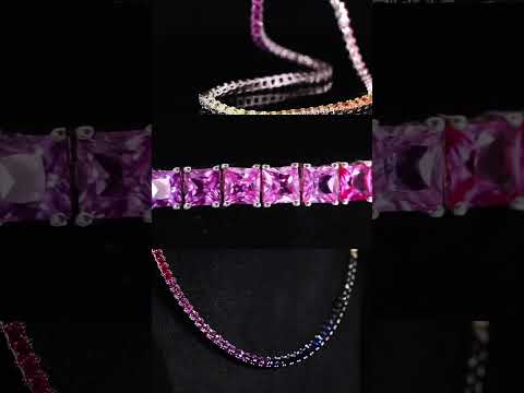 - التصميم: عقد تنس أنيق بألوان قوس قزح مزين بأحجار الياقوت متعددة الألوان