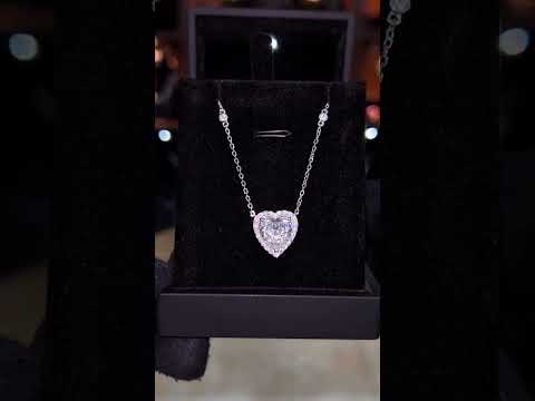قلادة سميحة على شكل قلب أبيض من الفضة عيار 925 مرصعة بالألماس الصناعي عالي الجودة