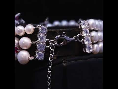 Omnia Blue Butterfly Pearl Bracelet in 92.5 Silver with High Quality Simulated Diamonds