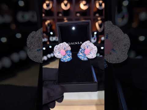 Omina Zulaikha Pink Coral Flower Earrings in 925 Silver with High Quality Simulated Diamonds