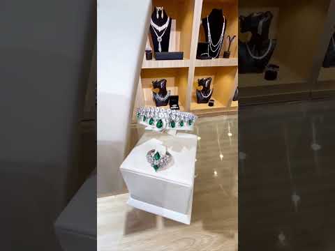 Omnia Rahaf Green Bridal Full Set Accessories in High Quality Zircon Stone in Rhodium Plated