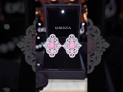Omnia Nakaret Pink Earring In 92.5 Silver High Quality Simulated Diamonds