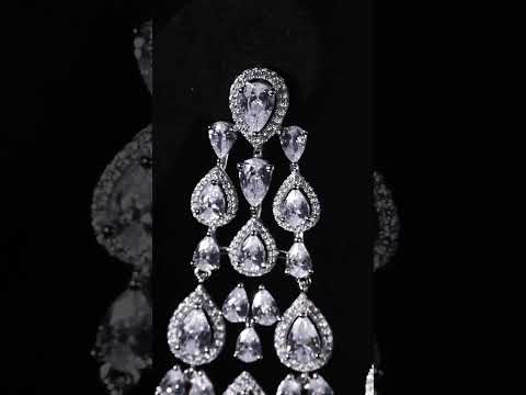 Omnia Zakiyah Luxury Bridal Full Set in High Quality Simulated Diamonds with Pear and Marquise Cut Stones, Rhodium Plated