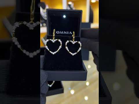 Omnia Bashair Golden Heart Drop Earrings in 925 Silver with High-Quality White Simulated Diamonds