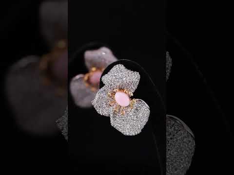 Omina Zulaikha Pink Coral Flower Earrings in 925 Silver with High Quality Simulated Diamonds