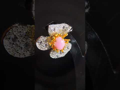 - Pink coral floral motif adorned with sparkling simulated diamonds