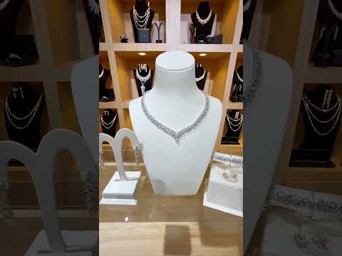 Omnia Aseel Gold Bridal Full Set Accessories in High Quality Zircon Stone Rhodium Plated