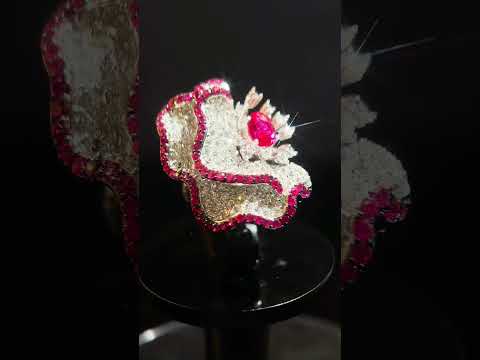 - Red flower motif accented with sparkling white and maroon simulated diamonds
