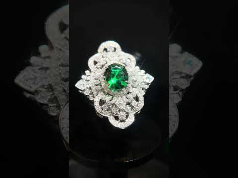 - Features a vibrant green centerpiece enhanced by sparkling simulated diamonds