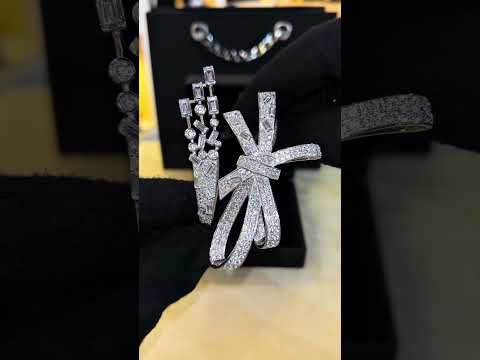 Grace your wrist with the timeless elegance of the Omnia Celeste Bow Design Bangle. Crafted from high-quality 925 sterling silver, this exquisite bangle showcases brilliant simulated diamonds in a delicate bow design, symbolizing elegance and femininity. The intricate detailing enhances its luxurious appeal, making it a perfect piece for brides, formal events, or as a refined fashion statement.