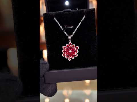 - Style: Floral-inspired pendant necklace with a vibrant red stone