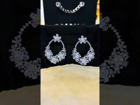 Omnia Elegant Floral Hoop Earrings in High-Quality Zircon Stone and Rhodium Plated