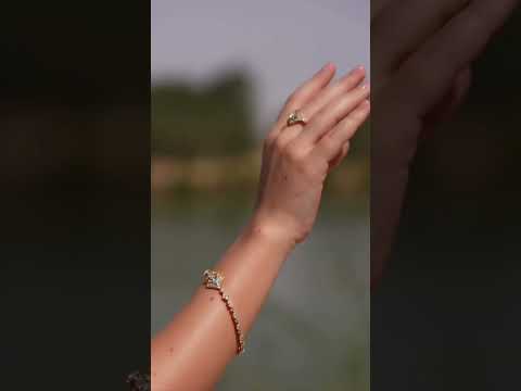 Omnia Elizabeth Golden Bridal Full Set with Pear and Round Cut High-Quality Simulated Diamonds in an Elegant Gold-Tone Rhodium Plated Finish