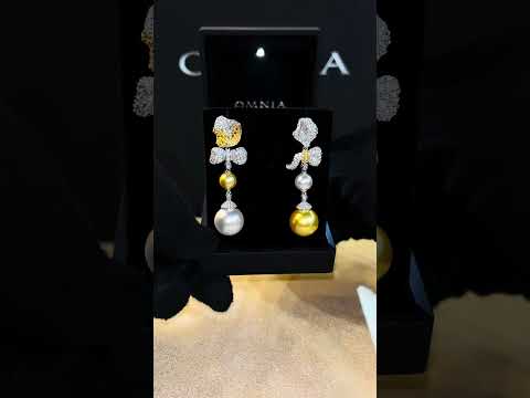 Omnia Haseena White and Gold Fresh Pearl Floral Drop Earrrings in 925 Silver In High Quality Simulated Diamonds