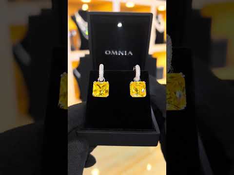 Omnia Helen Cushion Cut Drop Earrings with Yellow Zircon in High Quality Rhodium Plated