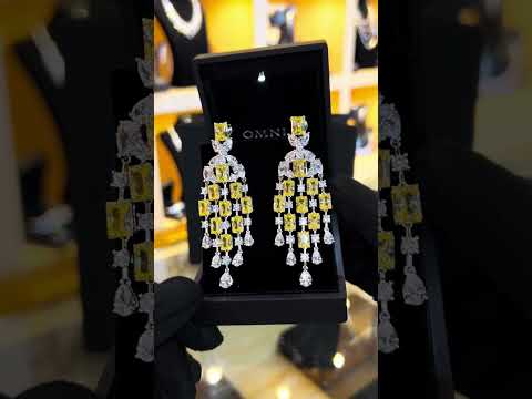 Omnia Israa Yellow Chandelier Earrings In 92.5 Silver High Quality Simulated diamonds
