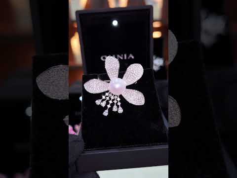 Omnia Ivie White Fresh Real Pearl Brooch With High Quality Simulated Diamonds in 925 Silver