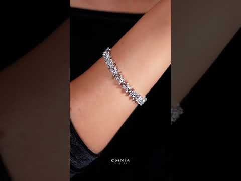 Omnia Lamara Floral-Inspired Tennis Set in 92.5 Silver with High Quality Iced Cut Stones
