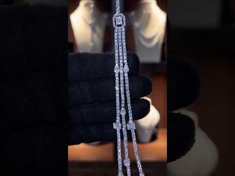 The shiny white long chain complete Set has high-quality white zircon stones and a rhodium-plated finish.
