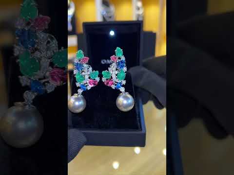 - Set of High Quality 92.5 Silver Multicolor Floral Design Pearl Drop Earrings
