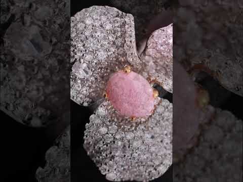 - Design: Elegant pink coral flower centerpiece embellished with sparkling simulated diamonds.