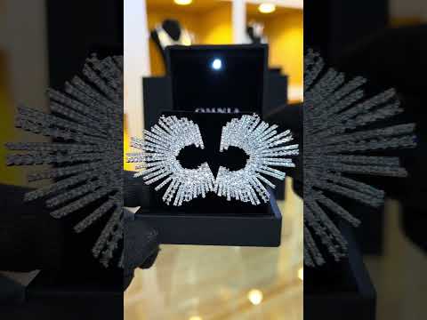Omnia Lujain Radiant Fan-Design Hoop Earrings with High-Quality Zircon Stones in Rhodium-Plated Finish