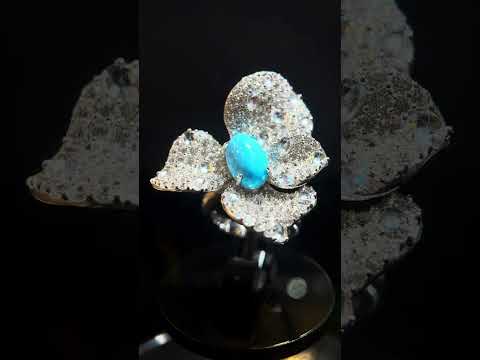 - Features a vivid turquoise coral centerpiece accented by sparkling simulated diamonds