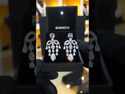Omnia Mohra Chandelier Earrings with White Zircon Drops in High Quality Zircon Rhodium Plated