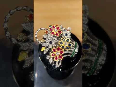 Omnia Naila Multi Color Floral Basket Silver brooch in 925 Silver High Quality Simulated Diamonds Stones