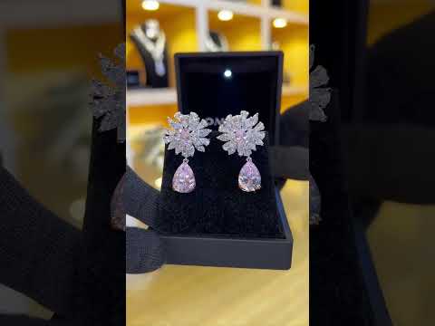 Omnia Nakaret Pink Earring In 92.5 Silver High Quality Simulated Diamonds