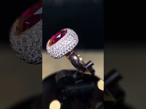 - Design: Classic rose gold setting adorned with vibrant red stones