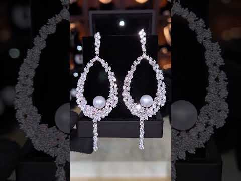 Omnia Samar Teardrop Pearl Earrings with Intricate Design in 92.5 Silver and High-Quality Simulated Diamonds