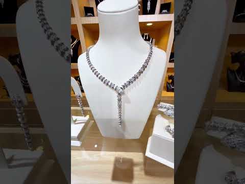The beautiful bridal full set is made of high-quality white shiny zircon stones and is plated with Rhodium. Shop now at Omnia Stores