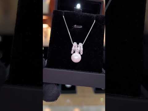 Accented with high quality simulated diamonds, each stone is meticulously precision-cut to deliver exceptional brilliance and a radiant diamond-like sparkle. The delicate combination of the soft glow of the pearl and the shimmering stones creates a balanced, luxurious look that enhances your neckline beautifully.