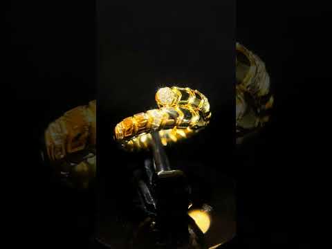 Omnia Shiza Golden Ring with Chevron Design in 925 Silver and High-Quality Simulated Diamonds